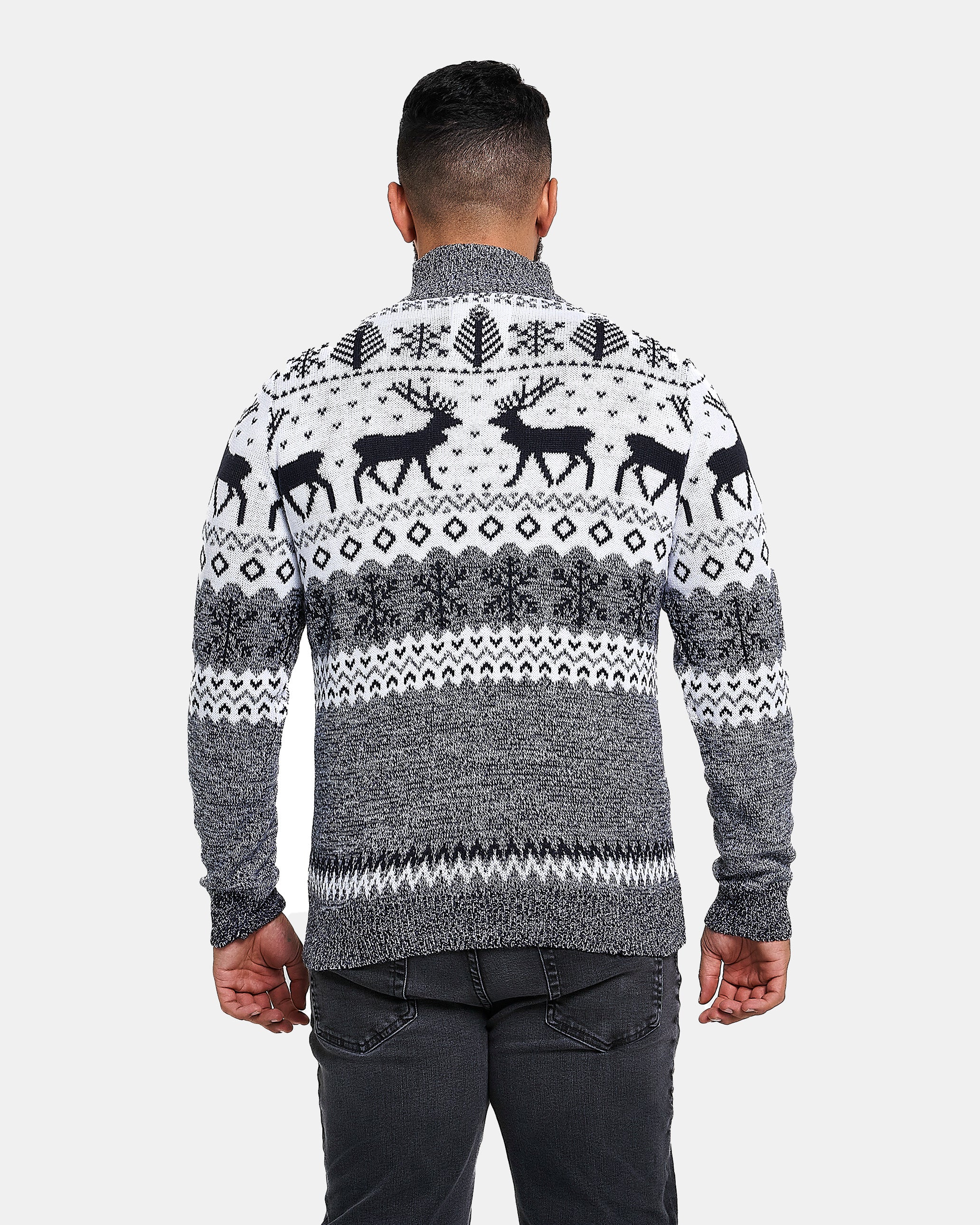 Celebrate the season in style with this cream Reindeer mock zip Christmas jumper. Crafted from soft acrylic, it offers warmth and comfort while the festive design brings a cheerful touch.