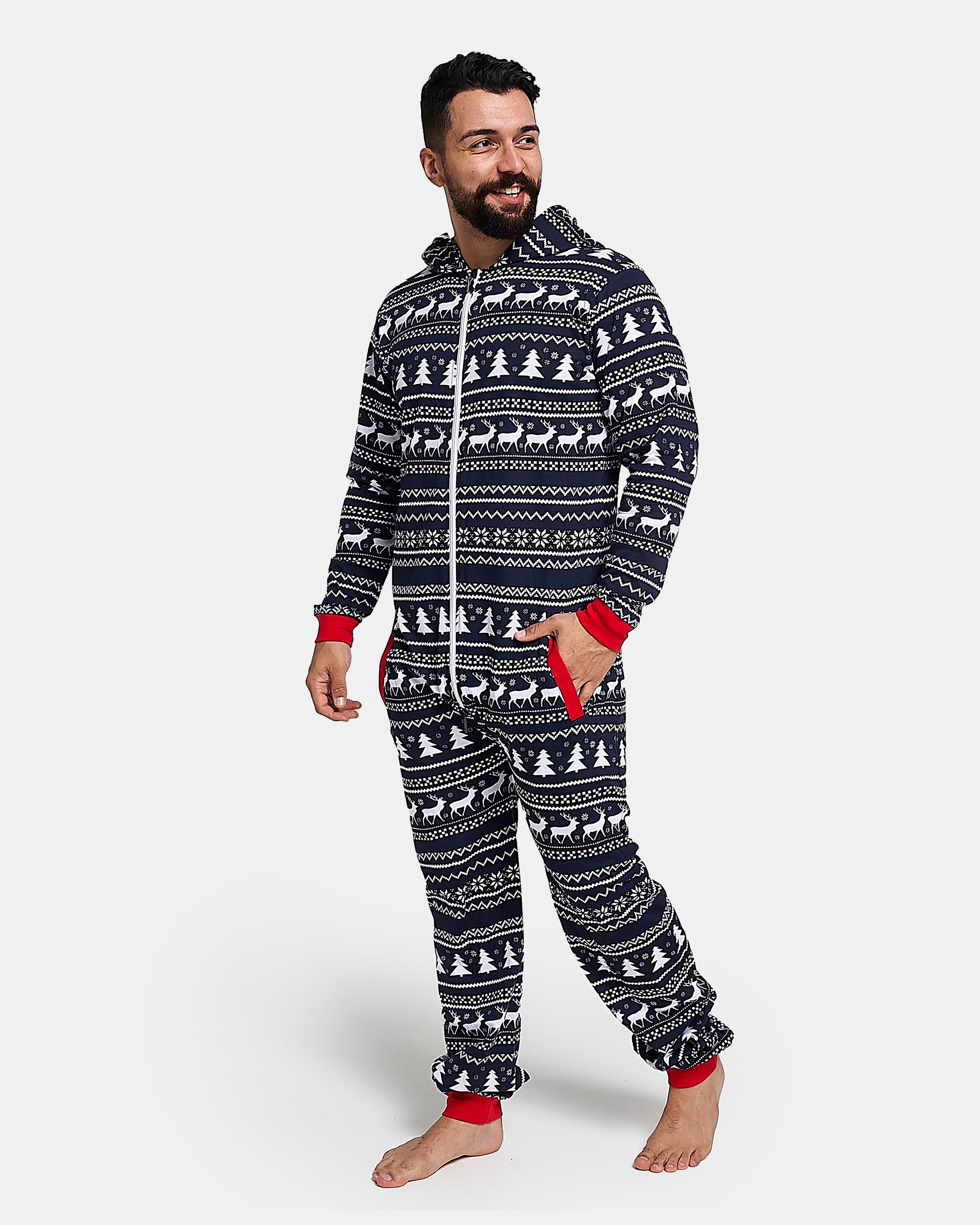 Celebrate the festive season in comfort with the NOROZE Men’s Reindeer Navy Christmas Onesie. Featuring a bold reindeer print with classic Christmas details, this cosy all-in-one is perfect for lounging, parties, or opening presents in style.