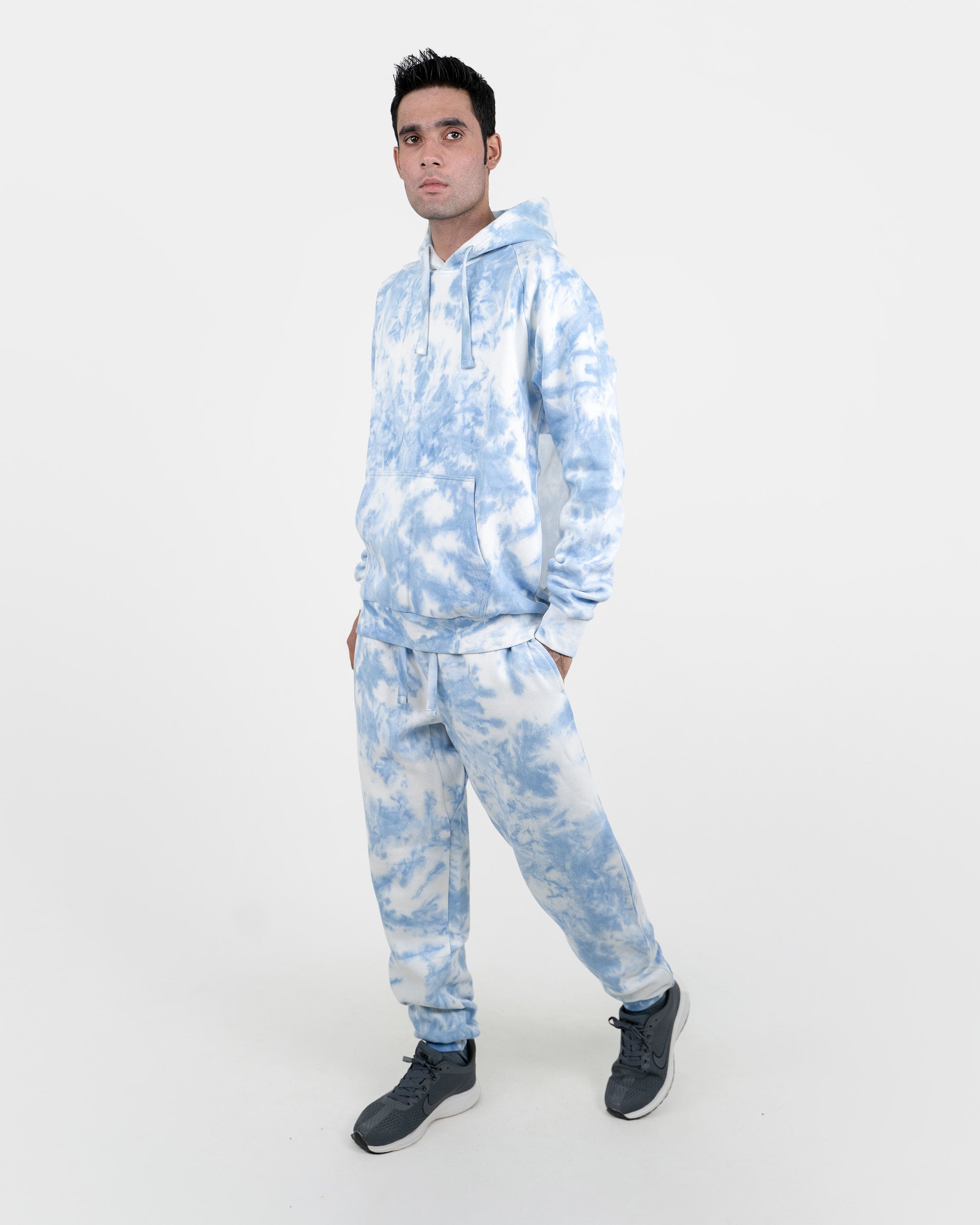 Make a statement in comfort with this Men's Blue Fleece Tie-Dye Tracksuit. Designed for everyday wear, the set includes a striking pullover hoodie and matching joggers — blending bold style with cosy fleece warmth for a perfect laid-back look.
