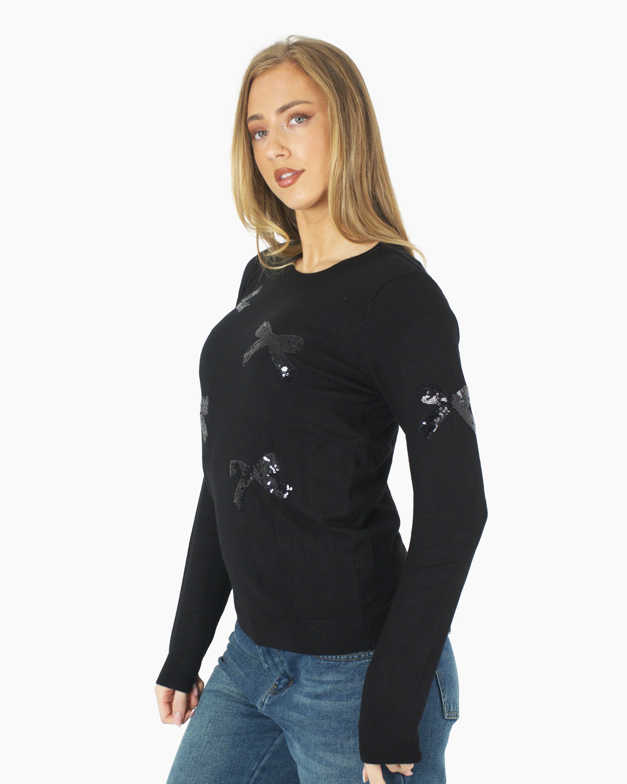 Women’s Christmas Black Bow Sequin Sparkle Jumper