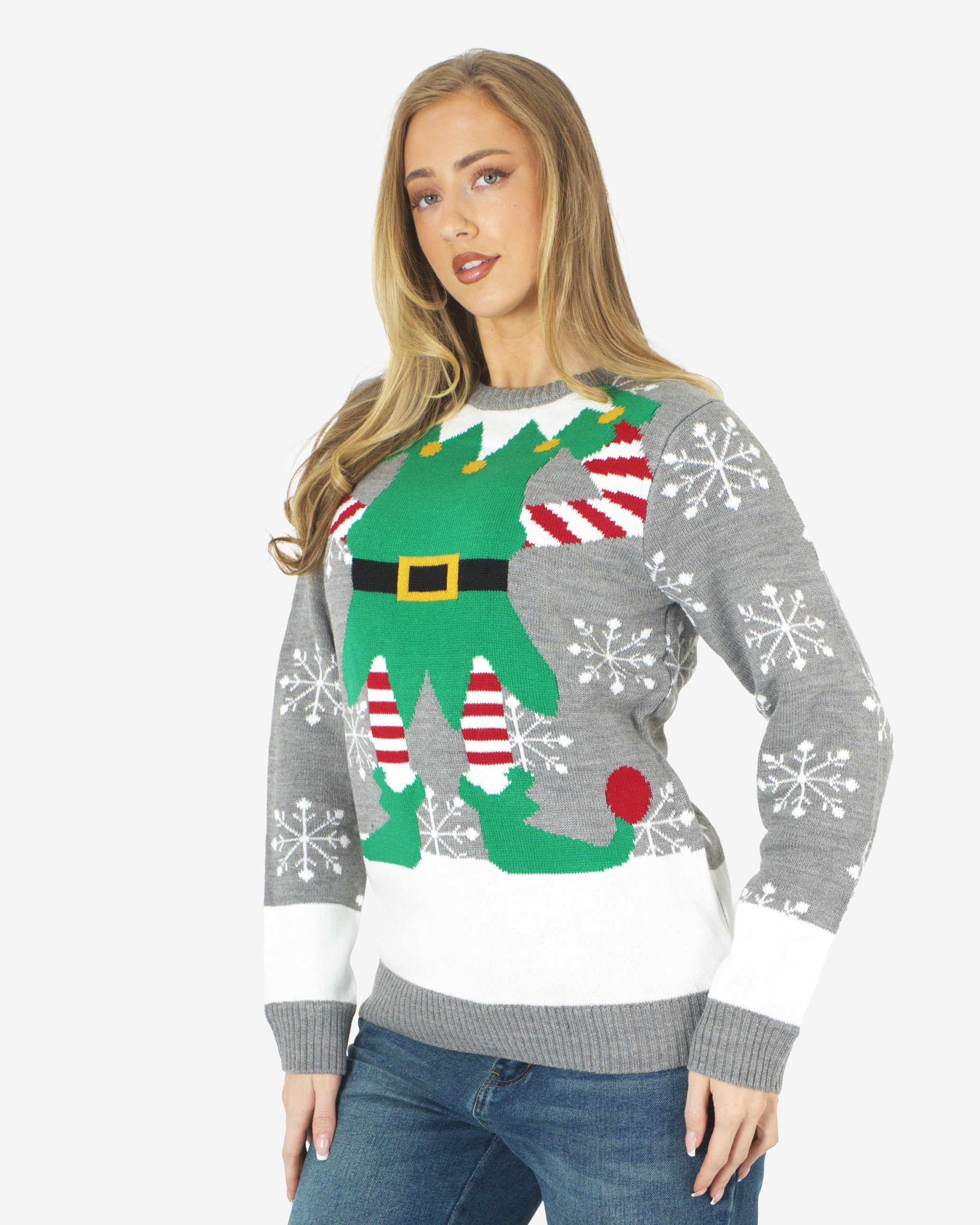 Celebrate the season with the Mid-grey Knitted Long Sleeves Sweater from NOROZE, designed to add playful charm and warmth to your festive wardrobe. With its classic elf-inspired motif, this jumper is perfect for cosy winter days and cheerful holiday gatherings.